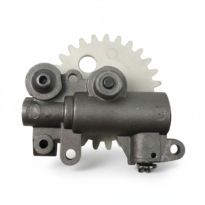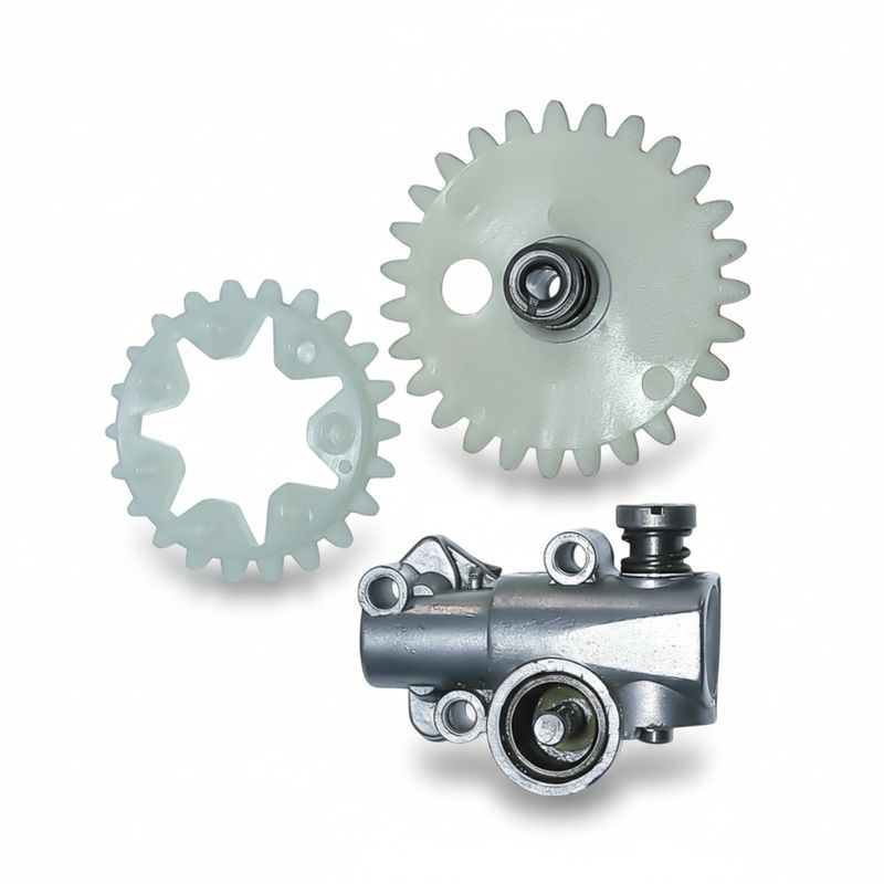 Bombas de óleo desgastadas ou com deficiência de funcionamento podem comprometer o fluxo lubrificante e acelerar o desgaste da corrente, barra e pinhão. Recomenda-se inspeção periódica e troca imediata em caso de falhas no fluxo de óleo ou ressecamento da corrente durante o uso.